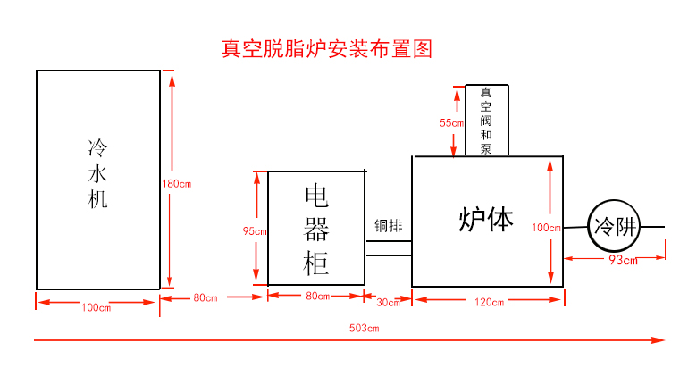 炉子用电三相380V,50平方线,空开130A 冷水机功率15.5KW,三相380V电,6平方线,空开32A 水冷机最好用去离子水或矿泉水,水冷机前后左右空出80cm距离 |